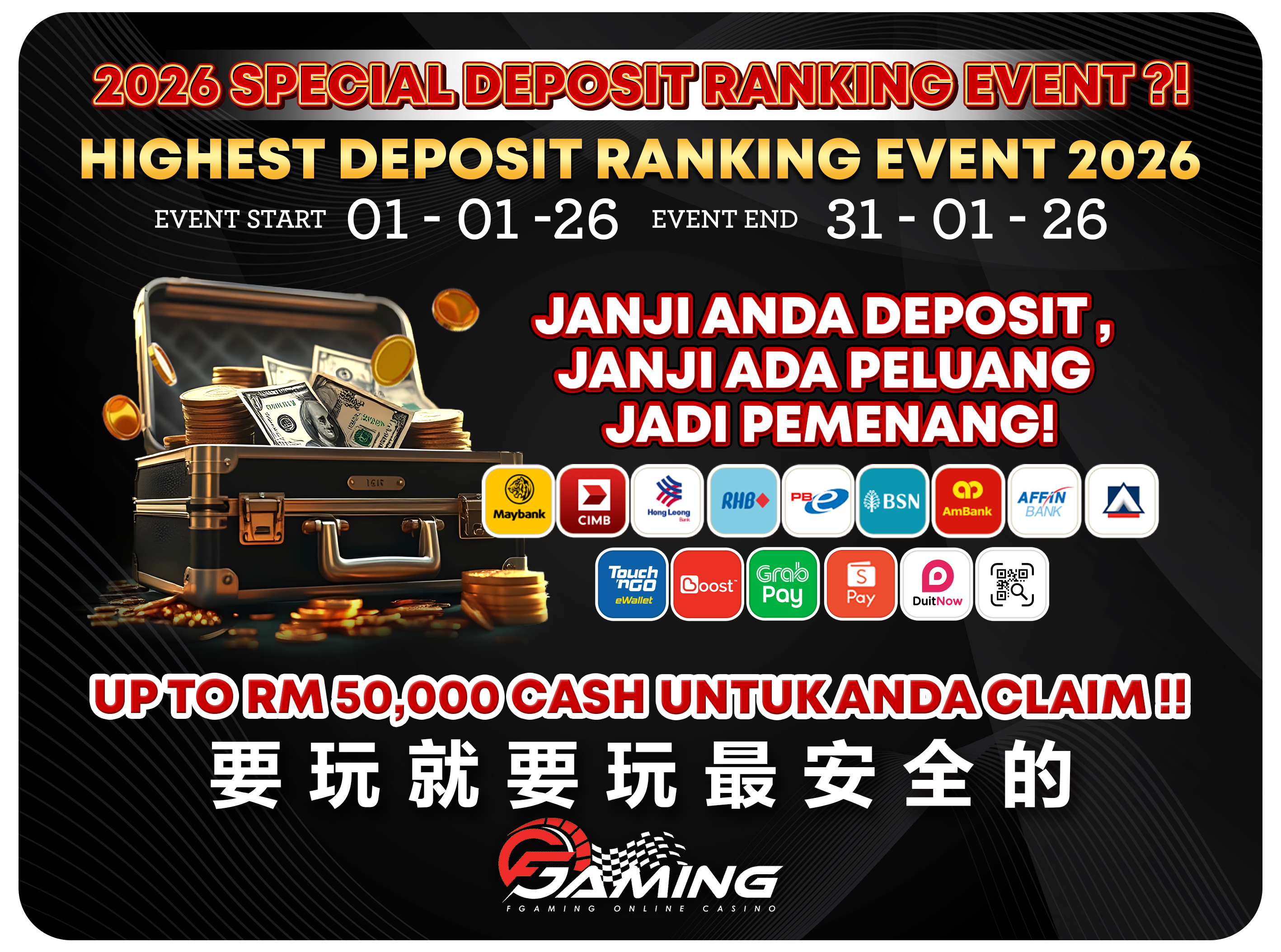💯 SPECIAL 2025 DEPSOIT EVENT UP TO RM50K ? HANYA DEPOSIT SAHAJA SUDAH ADA PELUANG JADI PEMENANG !! 💯 TRUSTED COMPANY 要玩就要玩最安全的 FGaming 平台 💯